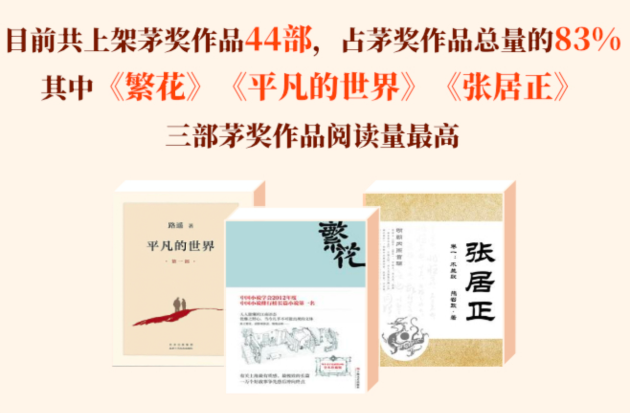 比如,番茄小說(shuō)平臺(tái)上架了44部茅盾文學(xué)獎(jiǎng)作品,占茅獎(jiǎng)作品總量的83%。從其平臺(tái)公布的用戶消費(fèi)數(shù)據(jù)看,出版物呈現(xiàn)出“經(jīng)典IP與大眾文學(xué)并存”的特征。其中《繁花》《平凡的世界》《張居正》等作品閱讀量尤其突出,印證了經(jīng)典文學(xué)作品在數(shù)字平臺(tái)的生命力。