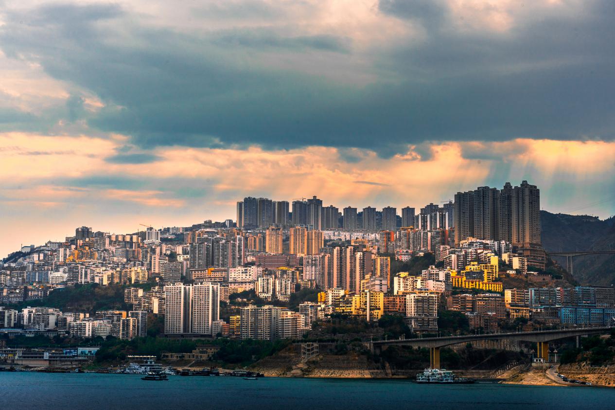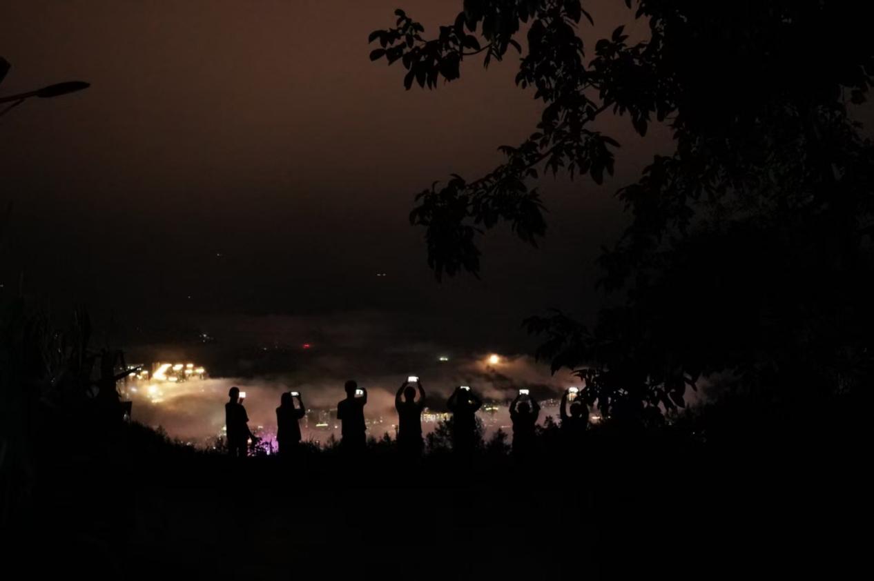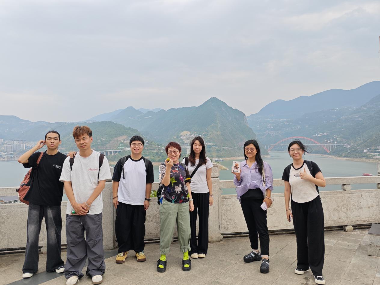 調(diào)研團(tuán)隊結(jié)束拍攝后在巫山縣望天坪面對山腳下的巫山縣城合影