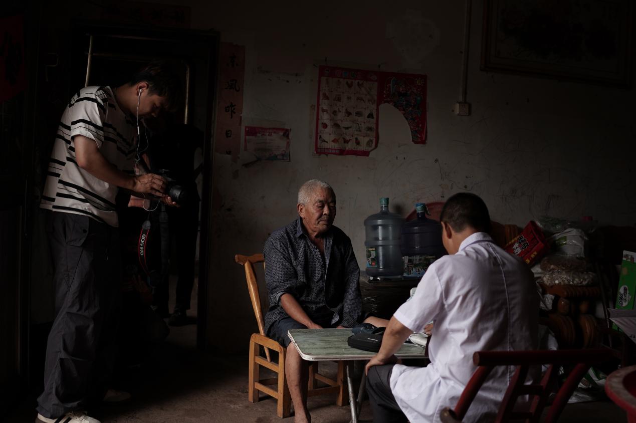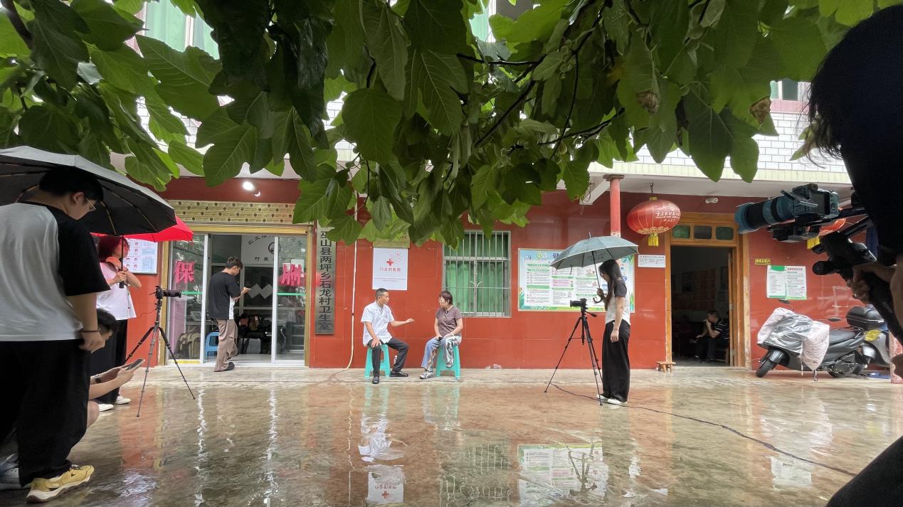 采訪結(jié)束后,調(diào)研團(tuán)隊深入各村衛(wèi)生室開展拍攝工作。在官渡鎮(zhèn)楊壩村,團(tuán)隊遇到了被當(dāng)?shù)厝朔Q為“神醫(yī)”的李尚發(fā),用鏡頭捕捉到了鄉(xiāng)村醫(yī)療的動人溫度。這位1971年10月出生、擁有36年基層醫(yī)療經(jīng)驗的黨員村醫(yī),自1988年起就扎根家鄉(xiāng),累計上門服務(wù)超過10萬人次,為群眾減免醫(yī)藥費(fèi)10萬余元,2021年榮獲“全國優(yōu)秀鄉(xiāng)村醫(yī)生”稱號。李尚發(fā)在烈日下進(jìn)入一位七旬老人的家中為他體檢前,貼心地為赤膊的老人先穿好上衣;在為一位心臟難受的老人完成檢查和治療后,他又趕往另一位患有雙相情感障礙女孩的家中,耐心地為女孩做完基礎(chǔ)身體檢查后開導(dǎo)她,并與她拉鉤約定“未來會更好”。