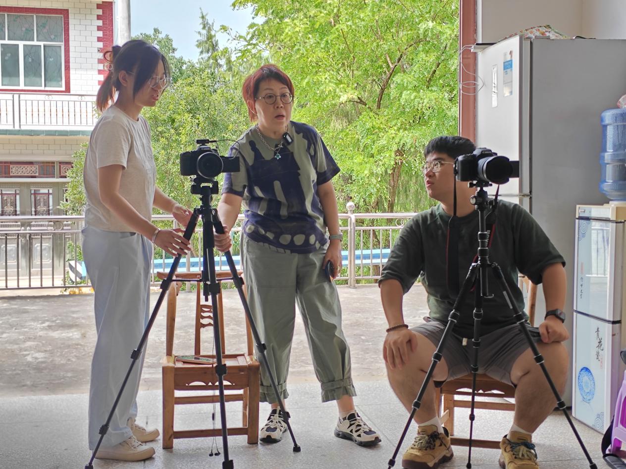 比技能提升更為深遠(yuǎn)的,是專業(yè)認(rèn)知與職業(yè)意識和習(xí)慣的建立。早上八點(diǎn)半出發(fā),一天的拍攝結(jié)束,回到酒店經(jīng)常是晚上10點(diǎn)11點(diǎn)。每晚還要開會觀看白天拍攝的素材并總結(jié)問題。第一次參加這種高強(qiáng)度的純紀(jì)實拍攝,對于每一位同學(xué)都是一次全新的挑戰(zhàn)和體驗。帶隊教師張建珍既是一位影視研究學(xué)者,同時還是一位經(jīng)驗豐富的紀(jì)錄片導(dǎo)演,豐富的實踐經(jīng)驗讓她在現(xiàn)場能敏銳地捕捉到整個團(tuán)隊存在的問題,同時手把手地對每一個同學(xué)進(jìn)行細(xì)致的拍攝指導(dǎo)。晚上看素材,當(dāng)發(fā)現(xiàn)同學(xué)拍攝的畫面沒有“做到”的時候,她指出這是“意識”的問題,因為意識的缺乏,所以“做不到”。她不斷向同學(xué)們強(qiáng)調(diào)“意識到”與“做到”的區(qū)別,強(qiáng)調(diào)“意識提升”的重要性,而意識的培養(yǎng)是在不斷練習(xí)中完成的。首先要明白什么樣的畫面是及格的、什么樣的表現(xiàn)是優(yōu)秀的,然后技術(shù)技能的提升就是水到渠成、或快或慢的過程。這讓同學(xué)們不僅學(xué)會了如何拍,更明白了為什么這樣拍。蘇春艷老師也向同學(xué)們強(qiáng)調(diào),要樹立職業(yè)人格的意識——“在訪談中、拍攝中,不能不敢問、不敢提要求,我們是為了職業(yè)目標(biāo),以我們的職業(yè)人格在提問、在提要求,一切要為更好地實現(xiàn)工作目標(biāo)服務(wù)”。陳明望導(dǎo)演則著重培養(yǎng)同學(xué)們的職業(yè)習(xí)慣與現(xiàn)場反應(yīng)能力,他強(qiáng)調(diào)“相機(jī)需時刻在手,確保能快速響應(yīng)突發(fā)場景”。正是在這樣的要求下,碩士生陳漢維逐漸養(yǎng)成機(jī)不離手的專業(yè)習(xí)慣。而陳明望為了拍攝到滿意的畫面的執(zhí)著和敬業(yè)精神也同樣給同學(xué)們留下了深刻的印象。