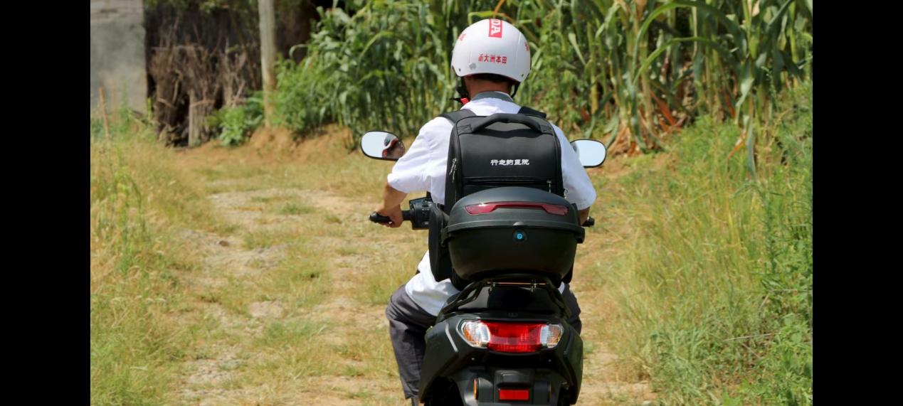 村醫(yī)李尚發(fā)背著“行走的醫(yī)院”騎摩托車前往村民家中