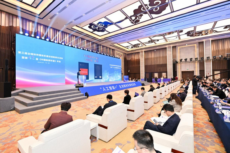 12月12日至13日,第三屆全媒體傳播體系建設(shè)創(chuàng)新研討活動(dòng)暨第四十二屆《中國新聞年鑒》年會(huì)在南寧市舉辦。此次會(huì)議由廣西壯族自治區(qū)黨委宣傳部、中國社會(huì)科學(xué)院新聞與傳播研究所、清華大學(xué)新聞與傳播學(xué)院聯(lián)合主辦,南寧市委宣傳部、中國新聞年鑒雜志社、《新聞與傳播研究》和《中國新聞傳播學(xué)年鑒》承辦。此次研討活動(dòng)以“‘人工智能+’主流媒體系統(tǒng)性變革”為主題,探討人工智能時(shí)代以AI技術(shù)賦能主流媒體系統(tǒng)性變革的路徑,促進(jìn)新聞傳播學(xué)界與業(yè)界良性互動(dòng)、產(chǎn)學(xué)研深度融合,推動(dòng)全媒體事業(yè)高質(zhì)量發(fā)展。來自國內(nèi)新聞?lì)I(lǐng)域的管理部門、權(quán)威研究機(jī)構(gòu)、高校新聞院系、主流媒體及商業(yè)平臺(tái)的嘉賓和代表共同參會(huì)。