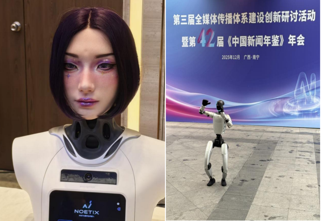 會(huì)議期間,AI機(jī)器人的展示吸引了參會(huì)嘉賓的關(guān)注,直觀呈現(xiàn)了 “人工智能 +” 在真實(shí)場(chǎng)景中的潛力,為媒體融合的技術(shù)應(yīng)用提供了鮮活參照。