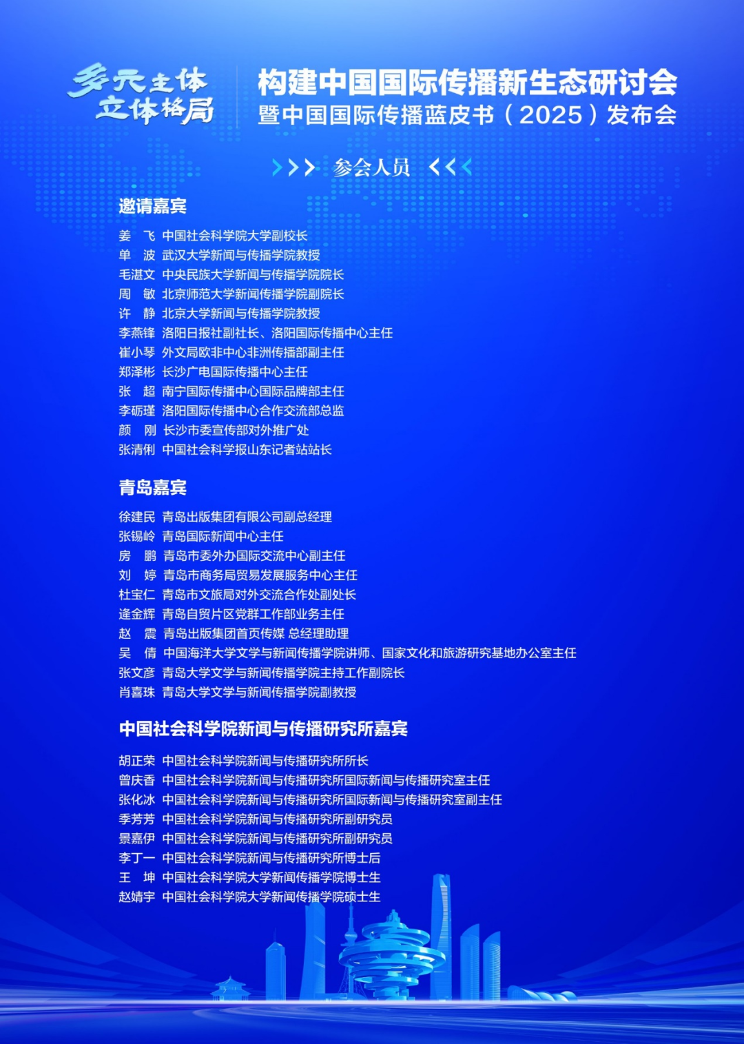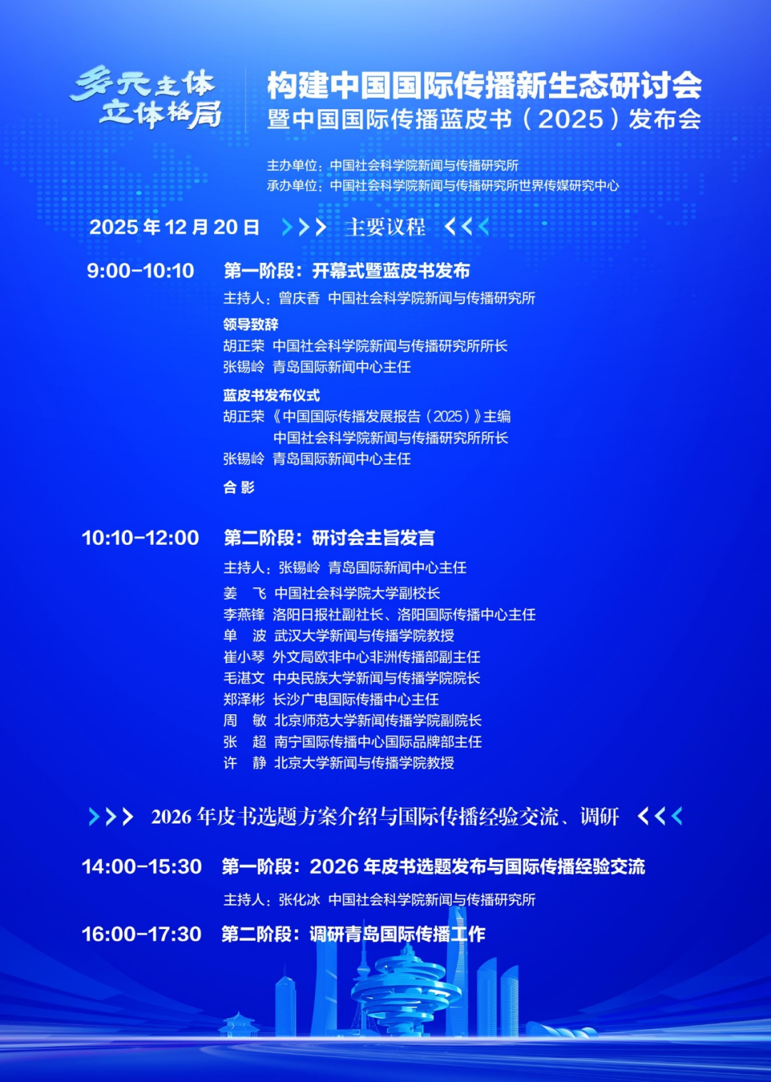 《國際傳播藍皮書:中國國際傳播發(fā)展報告(2025)》將于2025年12月20日由中國社會科學(xué)院新聞與傳播研究所與社會科學(xué)文獻出版社聯(lián)合發(fā)布。屆時外文局等機構(gòu),北京大學(xué)、武漢大學(xué)等高校,長沙、南寧、洛陽等地方國際傳播中心的代表,以及青島市直單位、駐青高校、科研院所等國際傳播力量共同參與,探討如何通過地方國際傳播中心建設(shè)形成國際傳播合力。